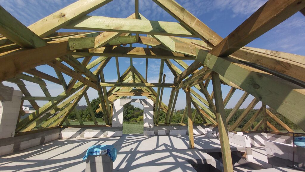 Zakres prac może obejmować zarówno konstrukcję dachu, jak i prace dekarskie związane z jego wykończeniem, w zależności od potrzeb inwestycji.